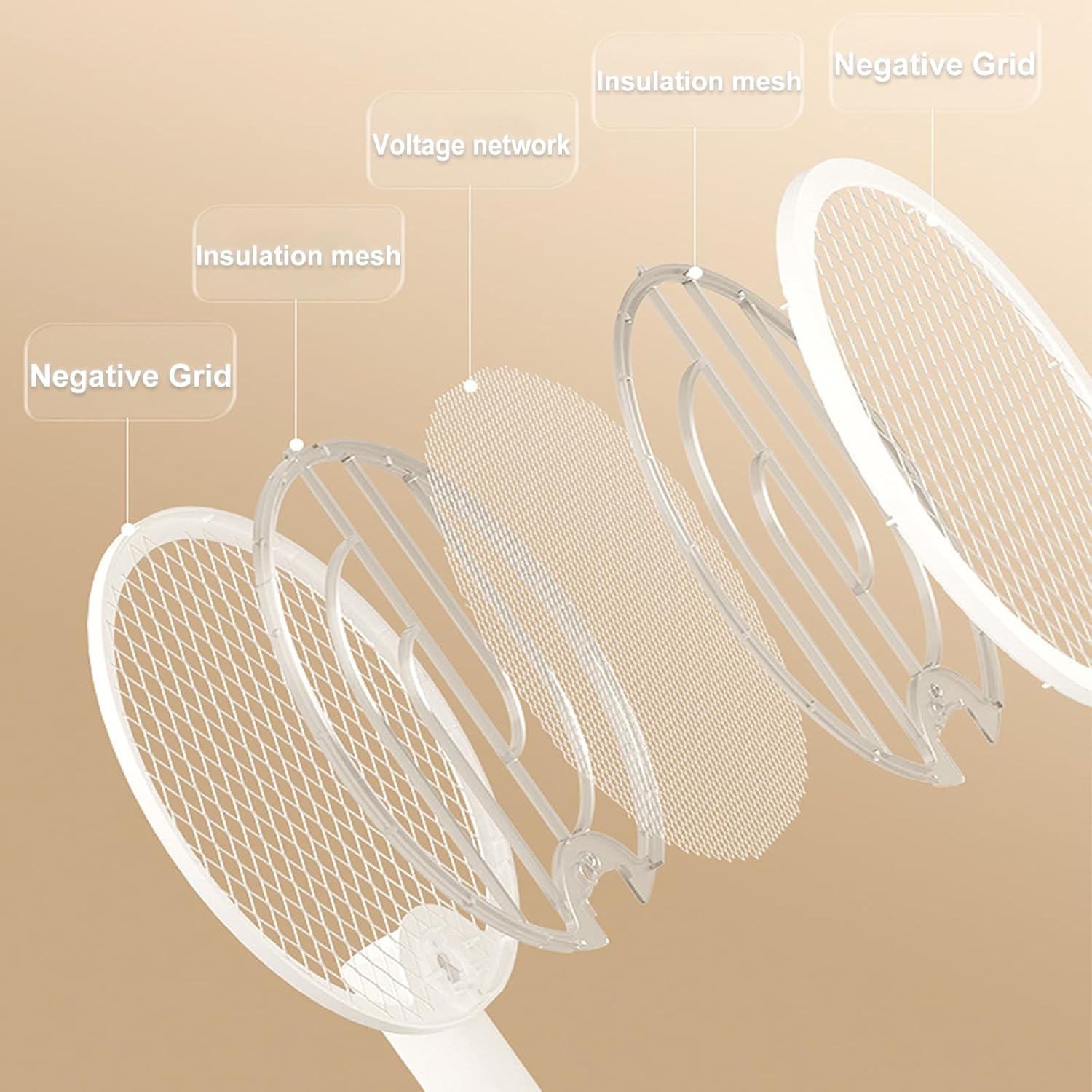 This USB rechargeable electric mosquito swatter is a modern 3-in-1 solution combining a handheld bug zapper, a mosquito-attracting LED lamp, and a desktop insect killer in one compact device. Designed for safety, performance, and convenience, it features a triple-layer mesh system: the inner grid delivers a powerful electric shock to eliminate insects instantly, while the two outer protective layers ensure safe handling without accidental shocks.